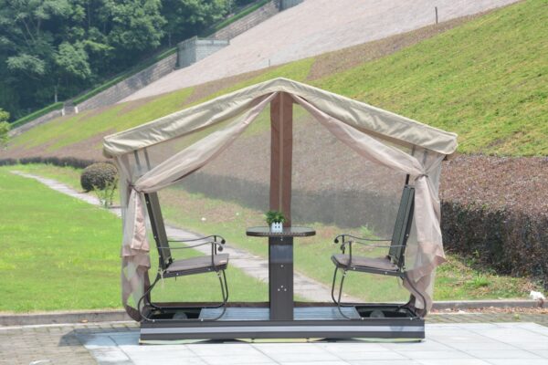 High-Quality Materials – Crafted with an aluminium frame, rainproof canopy, and a comfortable sling seat & backrest with a sturdy tabletop.