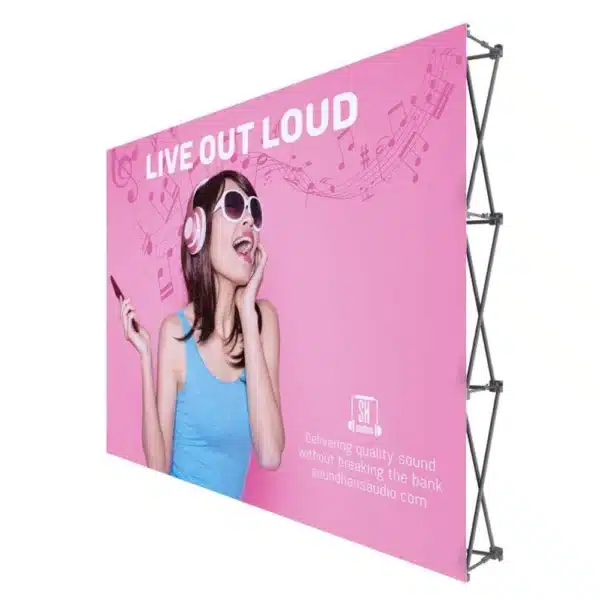 Fabric POP UP Backdrop Displays supported with Aluminium pop up stand, is highly lightweight & portable. It is also extremely easy to setup and collapse. The backdrop is full colour printed with custom artwork and highly brand-able. The Pop-up backdrop display is very sturdy, and is available in straight frames. It is best for trade shows, exhibitions and outdoor marketing activities