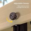 : Our canopy swing has adjustable canopy that can be set at various angles to provide optimal shade. The canopy design for sunshade and rain protection, against the wind and rain and dust, protect against UV.